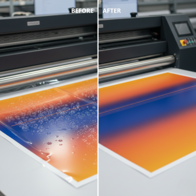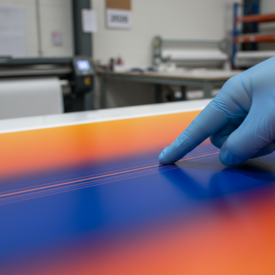 Por qué ocurre: no respetar tiempos de curado/evaporación según tinta (eco-solvente, UV, látex), temperatura y humedad del taller.